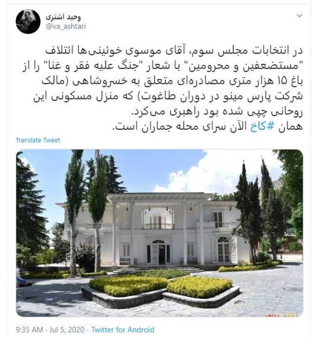 Source: www.peykeiran.com منزل علی انصاری در زعفرانیه. Check spelling or type a new query. We did not find results for: Maybe you would like to learn more about one of these?